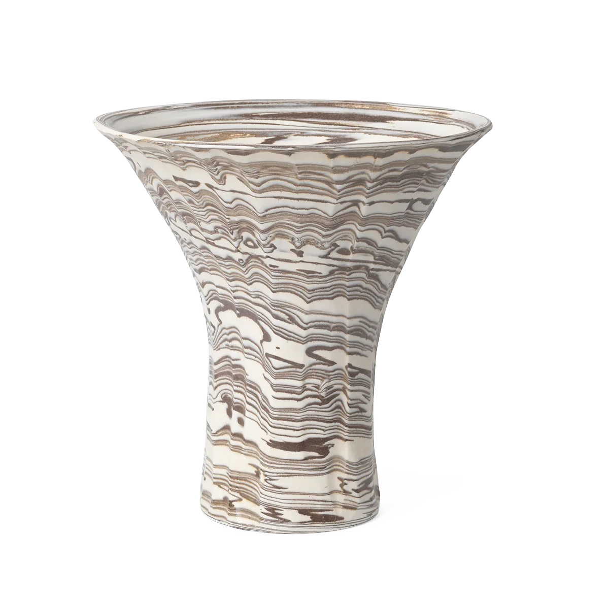 Each Blend Vase features a unique, one-of-a-kind pattern. The intricate motif emerges from the skillful folding of multiple layers of clay, giving rise to an engaging design with earthy tones and natural swirls.Â