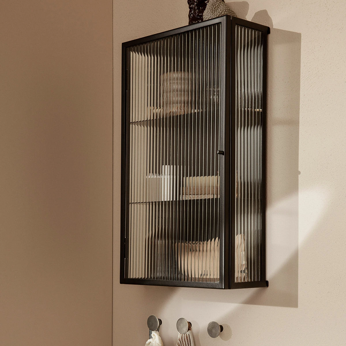 Reeded Glass Haze Wall Cabinet in Black by ferm LIVING