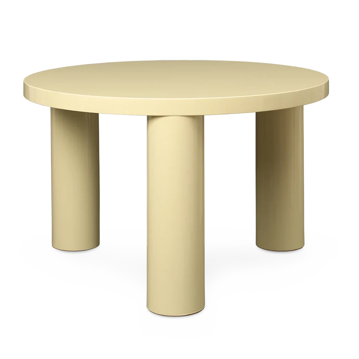 Inspired by brutalism, the Post Coffee Table plays with shapes to present a simple, round coffee table that draws you in. Made from FSC™-certified wood with a high-gloss piano lacquer, the distinctive table comes in various soft colours and has three robust cylindrical legs.