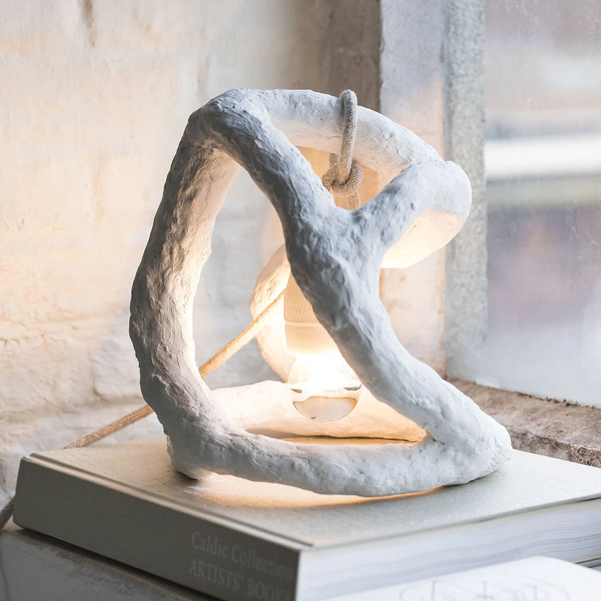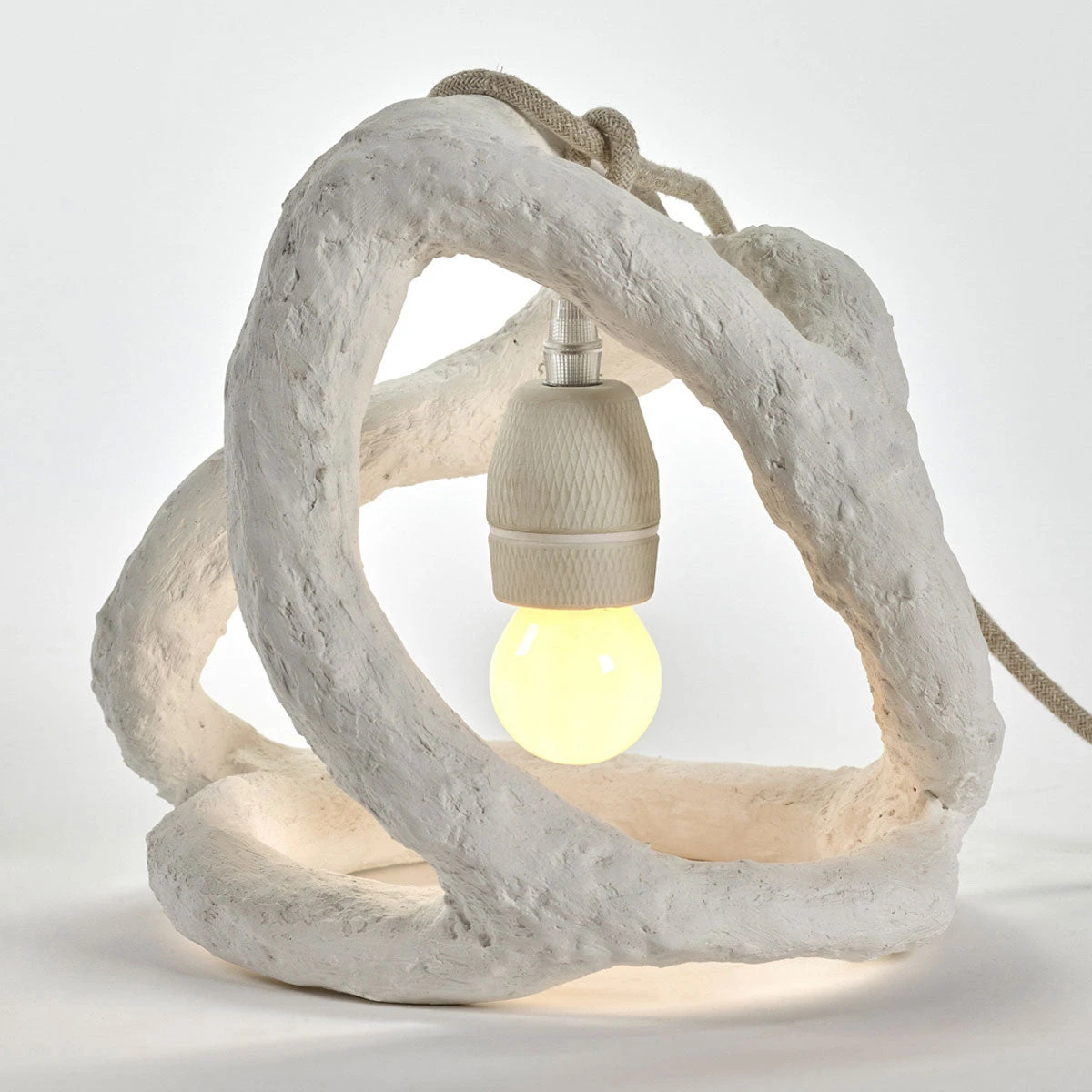 With her Sculpture Lamp, Marie Michielssen translated one of her artworks into a beautiful and functional lighting object. A simple, white socket at the end of a fabric-covered cable hangs loosely in an organic frame to create an atmospheric warm light from the inside.